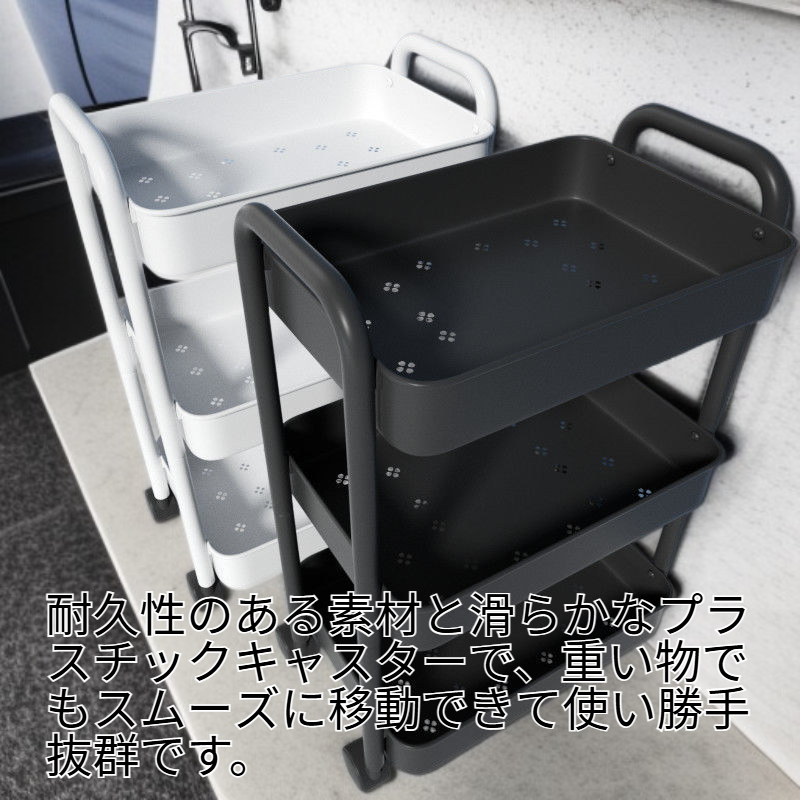 ● 耐久性のある素材と滑らかなプラスチックキャスターで、重い物でもスムーズに移動できて使い勝手抜群です。