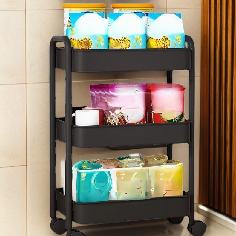 オフィス、家庭、キッチンに最適な3段多機能収納カートラック(プラスチック製キャスター付き)