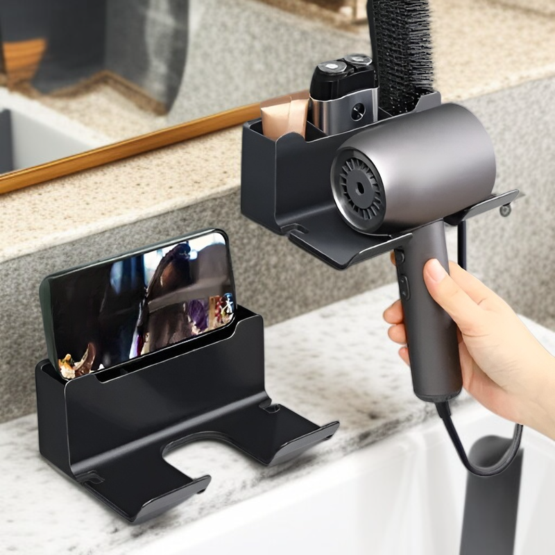 ● 強力な耐荷重力で、ヘアドライヤーや小物も安全に収納でき、落下の心配がありません。